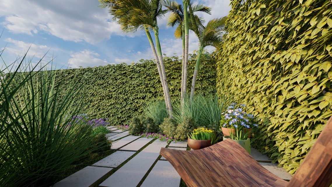 Guía para jardín tropical pleno sol de bajo mantenimiento para patios de 6×8m. DIY
